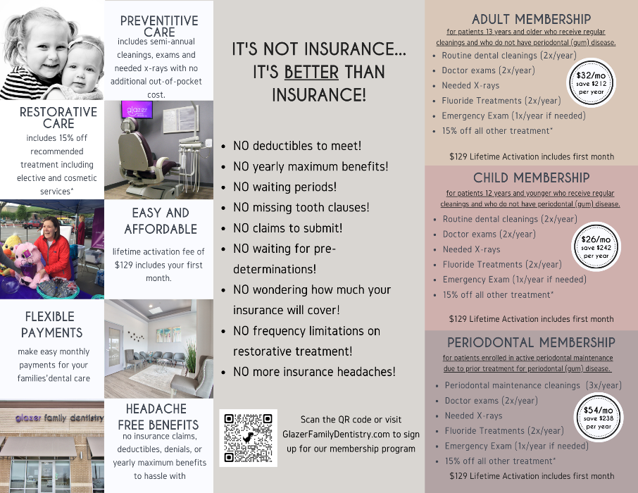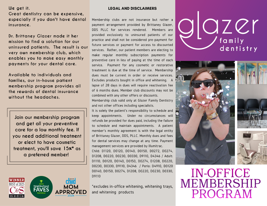 The cornerstone of our in-house membership program is to provide patients with preventative care which covers: